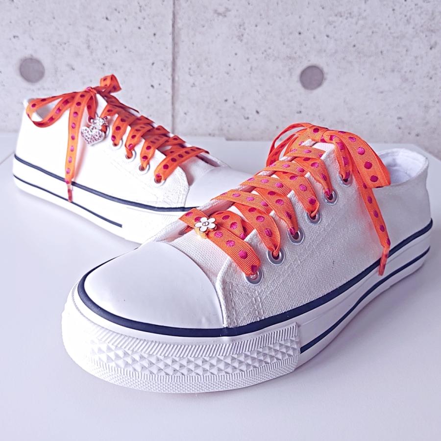 水玉オレンジ 白エナメルのフラワーチャーム付き リボンシューレース 靴紐 靴ひも くつひも 1cm チャーム かわいい おしゃれ スニーカー Sl45 My Shoelaces 通販 Yahoo ショッピング